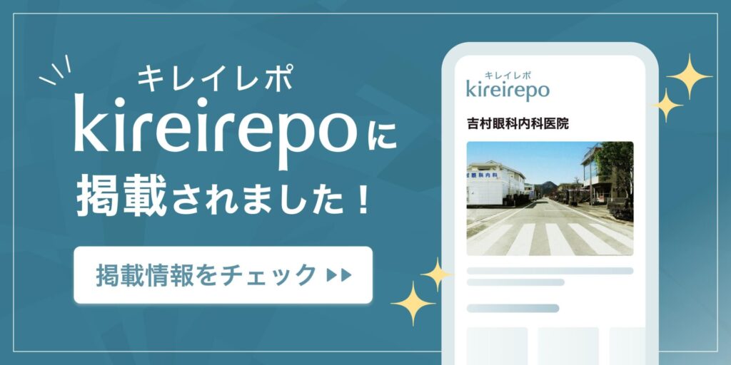 吉村眼科内科医院がキレイレポに掲載されましたNEWSこの度、吉村眼科内科医院の店舗情報が美容医療(自由診療・審美歯科)のプラットフォーム キレイレポに掲載されました。 吉村眼科内科医院がキレイレポに掲載されました 続きを読む »